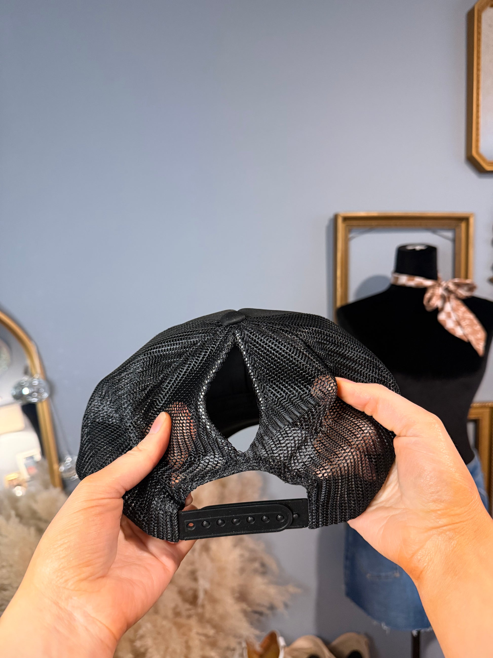 This isn't your average Trucker hat.. This is a Magna Pony! What's that? The Magna Pony has a magnetic ponytail hole for a snag free, adjustable fit - perfect for buns & high ponytails!